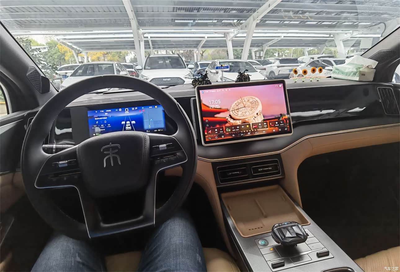 中控大屏清晰度较高,灵敏度也可以接受,但是内饰的一些用料还是有些硬塑料稍微有些失望,总体来说这款宋L DM-i的内饰确实是这个级别里面最好的,设计上有豪华感,技术方面也跟上了新时代的潮流,唯一遗憾的就是使用的一些材料略显逊色了点。