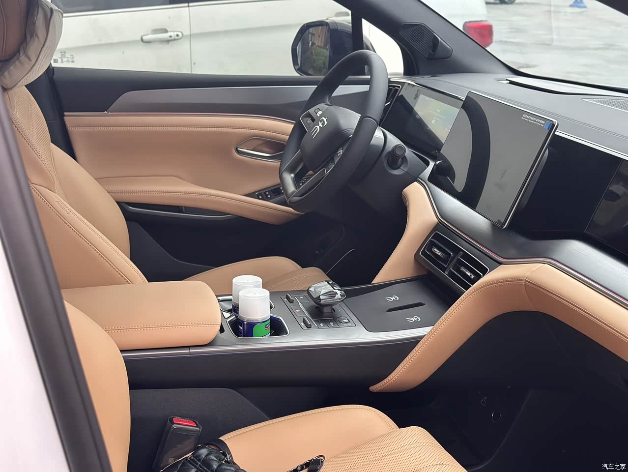 内饰上,整体风格简约而不失科技感,就是内饰颜色丑了,其他的都还好,大量软性材质的使用,提升了车内的质感。中控大屏功能丰富,操作流畅,显示清晰,几乎所有车辆功能都能在上面便捷操作。