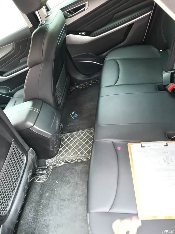 前排有点瑕疵,感觉矮了点,175身材上车有点碰头,估计可能是座位做得太厚的原因,后排空间很大,两脚放后还有一两个拳头空间。