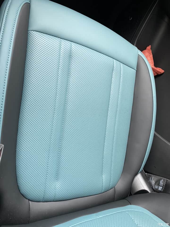 内饰设计感不错,挺潮流顺眼的,没有像某个品牌那样土味十足。显示屏分辨率高,清晰细腻,尺寸也很大,很上档次。座椅材质很好,摸起来手感很舒服,前排坐垫长度足够。第二排坐垫偏短一点,但也算够用。方向盘轻巧,搓起来也很顺手。选的绿色混搭内饰也比较耐脏,越看越顺眼。