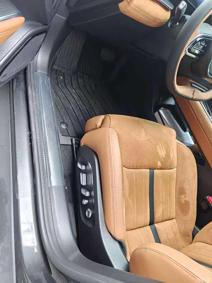 中高配只有赤麂棕配色,看起来很高级,用起来确实也很不错,车内摸得到的地方都是软包,氛围灯也包裹的很合适。