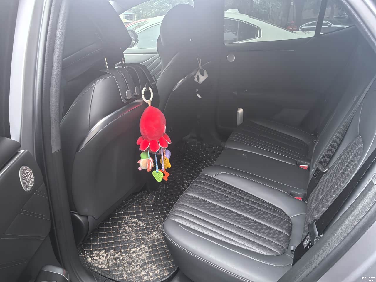得益于超过5米的车长,前排、后排的空间都特别大,抱着娃坐在后排也很宽敞。行李存储空间就更大了,之前车上后备箱的东西全部收拾下来,还没有装满新车的前备箱。