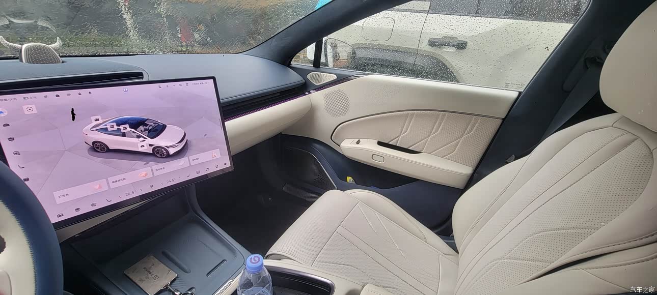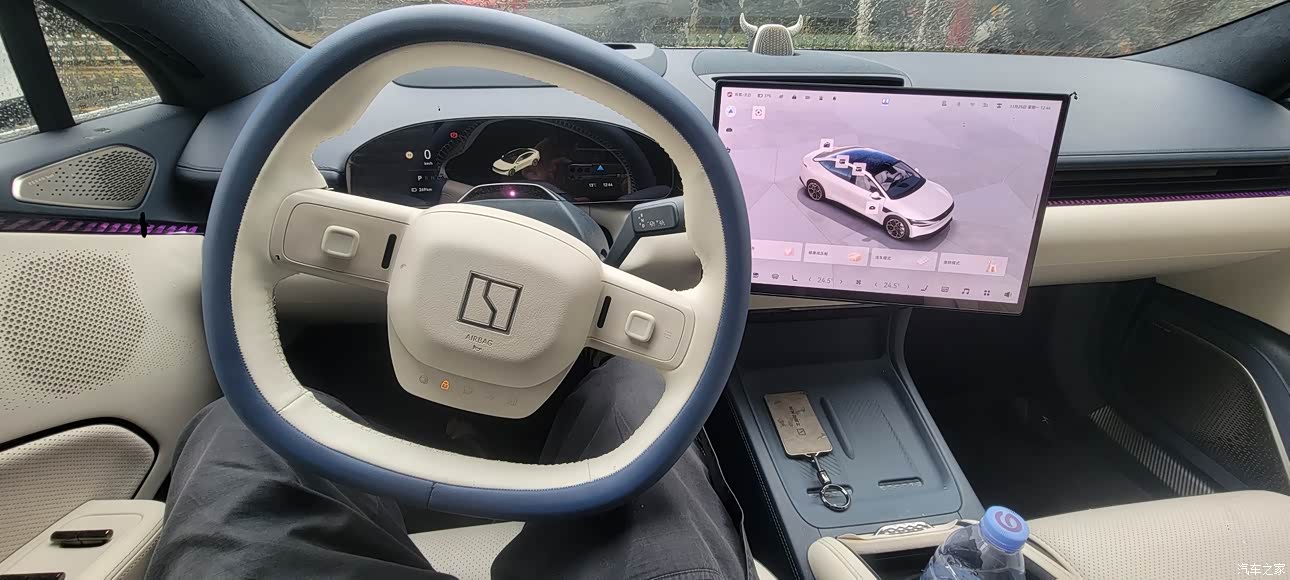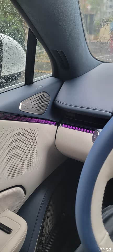 蓝白真皮内饰很显档次,做工用料也很精致,因为智己的大连屏看多了,有点审美疲劳,所以这次选择独立中屏的极氪007。