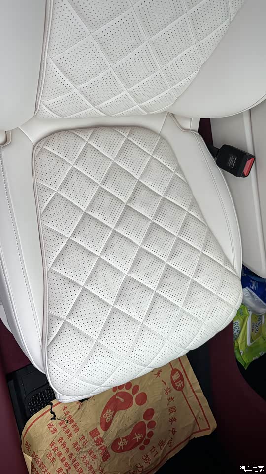 颜色非常的高级,非常能体现豪华感,但是白色的座椅,特别是屁股位置,让人真的很头痛,选择也很老火,比如你喜欢紫色,但是就必须忍受,白紫搭配,如果能够考虑座椅位置是紫色,其他位置是白色,个人觉得会很好,这个半苯胺真皮真的耐污性我觉得是很差的,稍微不注意就黑了。