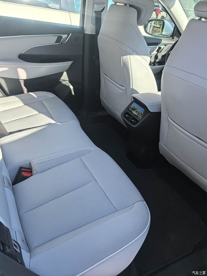 内饰的空间性也很大,后排坐上人的话也不会很挤,高个的话也完全没有问题,头顶尺寸也大。