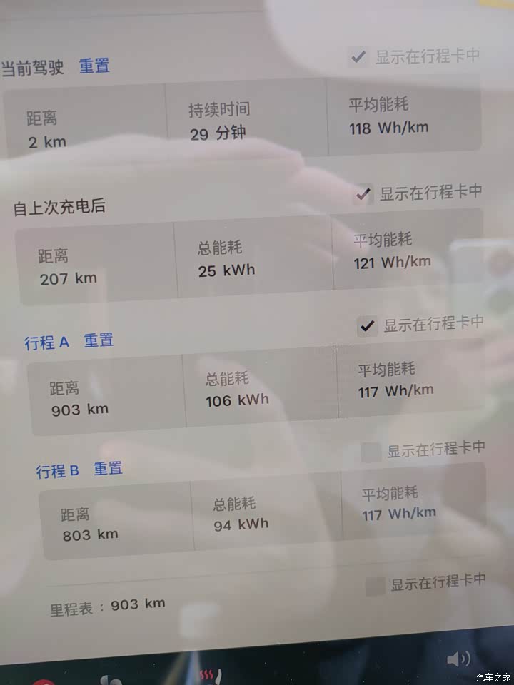 才开了5天,跑了900公里,能耗平均117吧,1.9t的车,我觉得这能耗可以了,表显是435公里,实际是可以超过表显的,大约能跑450吧!现在气温十几度不用开空调,后期太冷开空调不知道能打几折。中间7kw慢充了一次,花了50元。特斯拉超充了一次,花费80元,减去提车时充满的电,大约合0.19元一公里。电车还是比较省钱的,就是没有家充,补能挺费劲。后期天冷了再继续发能耗吧!