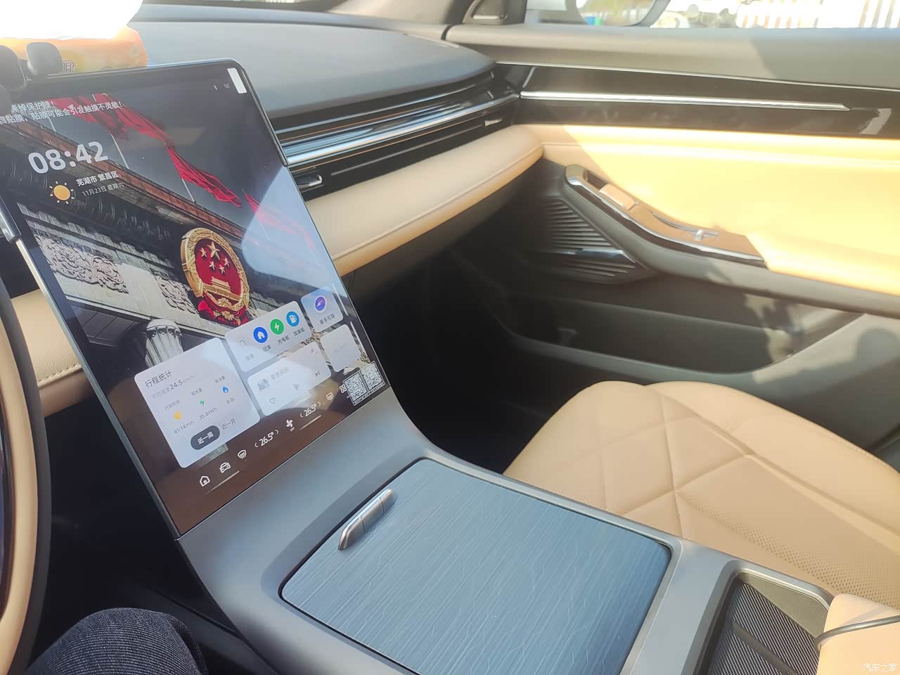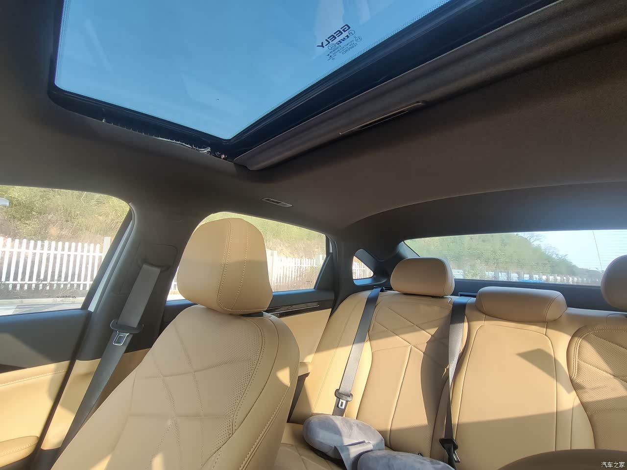 内饰颜色很温馨,后排空间足够,前排驾驶舱也有一定储物空间
