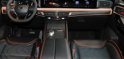 内饰方面,探险者同样表现出色。中控台布局合理,按键和旋钮手感细腻,操作便捷。仪表盘采用了全液晶显示,信息丰富且清晰易读。中控大屏支持触控操作,集成了导航、多媒体、车辆设置等多种功能,非常实用。座椅采用了皮质包裹,触感柔软,乘坐舒适。此外,车内还配备了多处储物空间,方便放置小件物品。