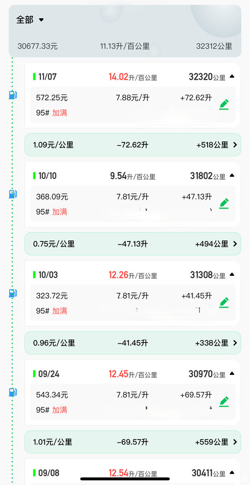 11.3L 基于3.2万公里的综合驾驶收集到的数据!高速能低到8L以下高架最低开到过7L