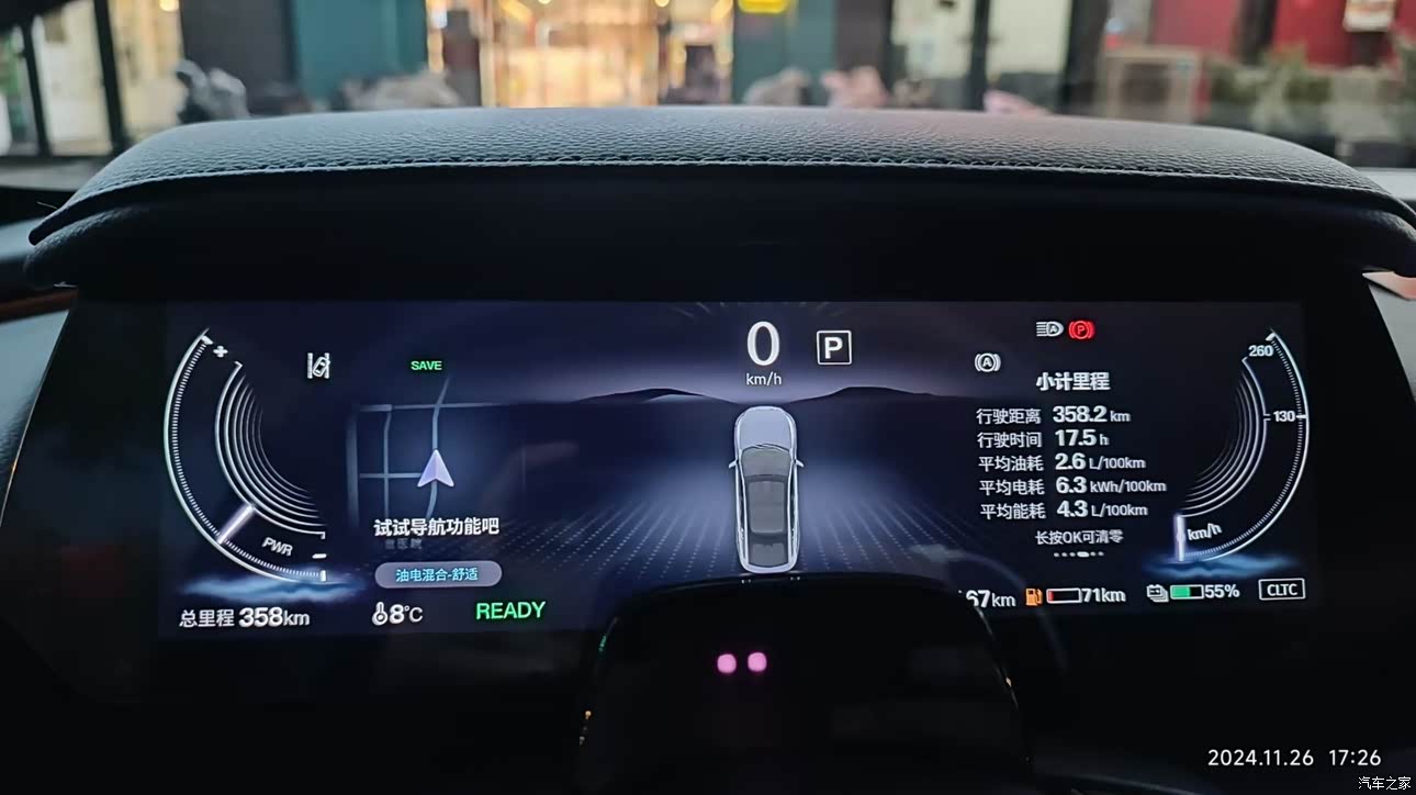 续航方面因为是增程的所以不是很在意,市里开200续航已经可以了,开了一周电耗是6.3油耗是2.6,这个成本真的挺低的,高速还没跑过,现在是跑了360公里了,大概是开着空调180多.仅供参考,有可能是跑的公里数比较少,反正这一周多我觉得挺省的