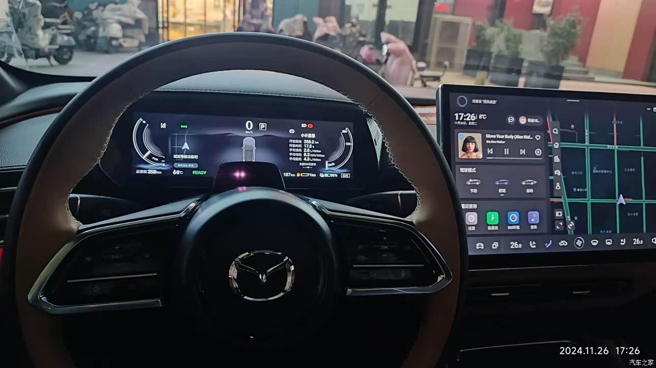 之前也试驾过马自达,这款增程的区别不大,低盘调教真的挺稳的,还是个怀档让我也挺意外的,起步没有想象的那么快,但是很线性我觉得做这个车应该不会晕车,动力方面因为都是市里用车还没发判断,方向盘的握感挺好的,一直都说马自达是人马一体,有很多设计的确是向着用户的,还是个后驱的,体验感挺满意