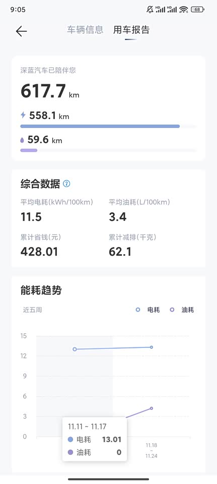 购车背景: 今年7月后老婆公司搬迁,每天通勤接近30公里,原来家里的油车只能给她开了,而我自己通勤也要40公里,虽然单位有通勤班车,但考虑到方便性还是再增购一辆车,而且还可以置换补贴(原来的油车也是我名下,将旧车过户给了朋友,置换补贴还在审批中。。。) 看车订车: 原来的油车是是小轿车,自己比较喜欢SUV,前后看了合资油车威兰达、RAV4、日产奇骏,新能源也看了BYD宋PLUS、宋L、S07等等。对比下来感觉新能源(混动)性价比更高,去试驾了宋PLUS、深蓝S07。宋PLUS原来是首选,可惜销售那态度让却步,后面朋友介绍了深蓝的S07,第一次到店试驾就给外观和内饰、智能化配置深深吸引,但唯一缺点就个人觉得太大。后面听说10月份S05上市就决定再等等。期间在汽车之家、抖音、小红书都找了很多关于S05的介绍就深深被吸引了,马上下订999预定金。10月20日正式上市后,考虑两天就转大定(主要纠结是次配还是顶配,最后综合考虑下来选择了增程MAX版,说真的现在后悔没选顶配,(向日葵屏、音响都是我想药的,像素大灯倒是没所谓)。 提车经过: 我的订单是10月22日锁单,一直到30号才匹配上,期间每天刷新几次APP。。。终于又过了2天发运,11月7日到店。本来想找到店就能顺利提车,刚好那几天又出差了,后面又等合格证、贷款放款手续,一直折腾到11月12日才把车提回家。 用车感受: 从开始关注S05以来每天都从很多自媒体了解这车更种用车技巧、心得,因此很快就上手了。对比之前家里的油车从外观、加速、操控、智能化配置都是无法比拟的。尤其是IACC智能辅助驾驶十分好用,我每天通勤都要走30公里的城市快速路,只要一上快速路就必开IACC轻松驾驶。目前已经开了半个月、600多公司,电耗11.5左右,加了200块油也就上周去了趟郊区才用上增程。至于充电速度,个人也是比较满意的,我一般都低于25%后充电,半小时充50%没问题。从提车至今S05总体表现很满意,性格比很高。最后真心希望向日葵、音响能做成选配,虽然我已经没机会选了。