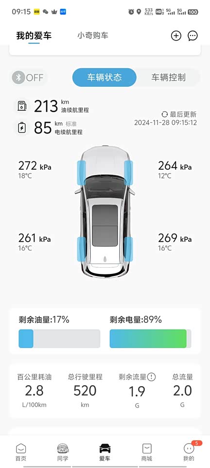在秋季不开空调、国道行驶速度保持在四五十公里时,电耗表现很节能,基本可以达到1:1。但入冬后开启暖风功能后,续航有明显缩减。