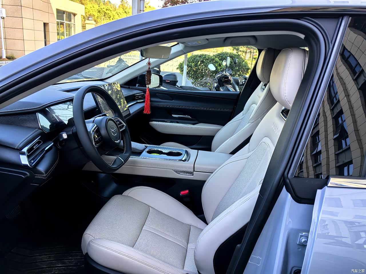 开起来挺舒服的,马自达操控还是一如既往地好,油门和刹车也比较线性,有点开油车的感觉,空调制冷也非常给力,加速也非常快,不会出现油车开空调动力不足的现象,方向盘也很好掌握,刹车过程中能量回收也没有其他新能源车那么明显,没有那种特别晕车的感觉
