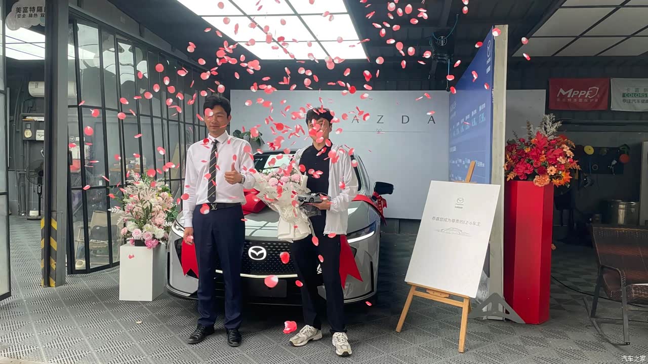 【试驾】试驾环节很顺利,各项功能都体验了一遍,感觉操控性非常不错。作为燃油党,最在意的就是油门刹车的脚感是否线性,从隔壁某自主品牌过来,马自达的调教还是拉开差距,操控性必须满分。唯一让我有点失望的是,试驾后并没有收到任何的小礼品,其他朋友试驾时都拿到了水杯、充电宝和雨伞等,看来日系车企一贯的“抠门”风格没有改变。 【验车】在提车之前,我做了充分的功课,参考了很多小红书上的攻略,仔细检查了外观和底盘等各个部位。整体来看,车身无刮痕,漆面也很亮,底盘检查也没有发现任何问题。相比混动车型,纯电搭载了宁德时代的电池,质量更可靠。 【保险】在4S店购买的保险,价格大概是7000多元,感觉有点小贵。比同价位的其他车型贵了不少,不过纯电动,加上非自主品牌,倒也可以理解。 【交付仪式】交车的过程有点仪式感,现场布置了大红蝴蝶结,工作人员还送了鲜花和礼炮,感觉非常隆重。交车前,工作人员还帮我把车洗了一遍,干净整洁,整体体验不错。 【提车一周优缺点】