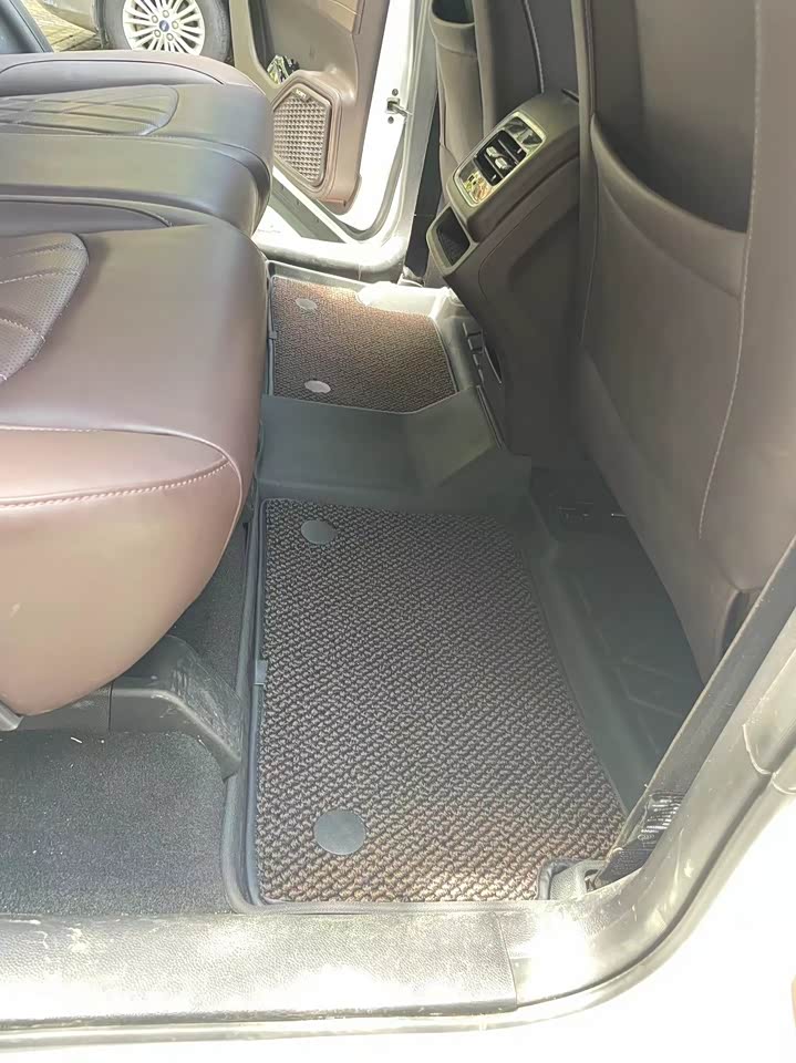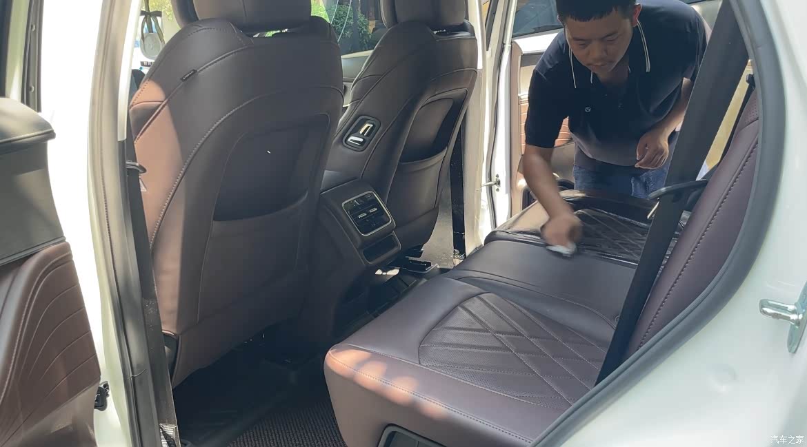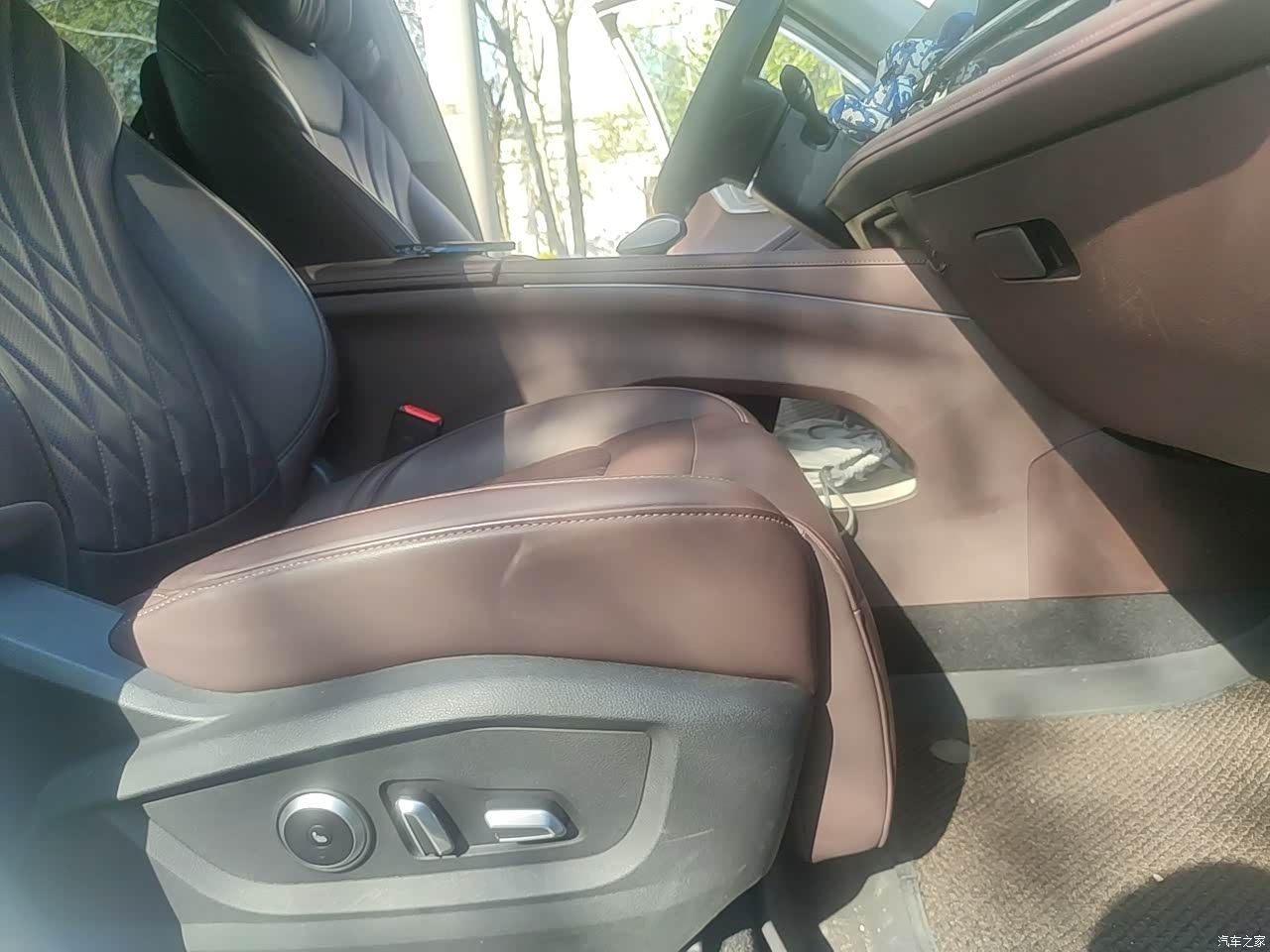 内饰用料可圈可点的,座椅很有质感,坐上去也很软,但支撑性足够。手能摸到的地方基本都是软性材料包裹,触感不错,内饰深棕配色简约而不简单,沉稳大气不张扬。用料比较环保,除了皮革味道,目前没有其它异常气味。后备箱储物格用的高密度环保泡沫,硬度高,没有气味!覆盖件比较厚,二排座椅放倒后,后备箱空间大且平整,很不错!