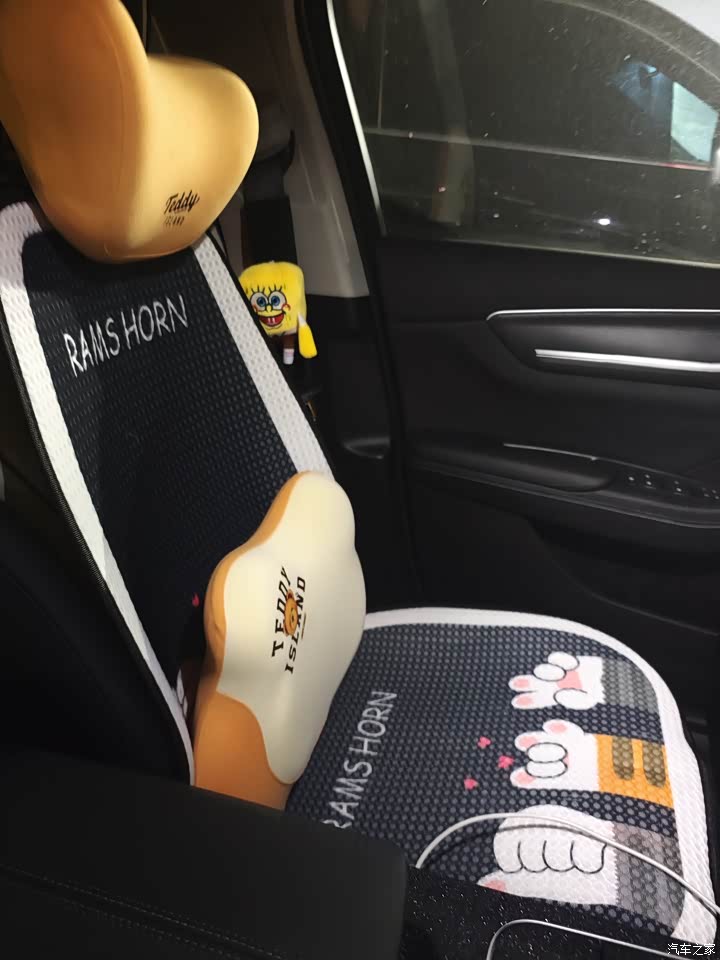 原来的内饰颜色是白色的,我不喜欢这个颜色,因为冬天衣服颜色深,非常的不耐脏,所以提车以后我首先买的就是坐垫,然后还买了腰靠和颈枕,就感觉舒服多了。