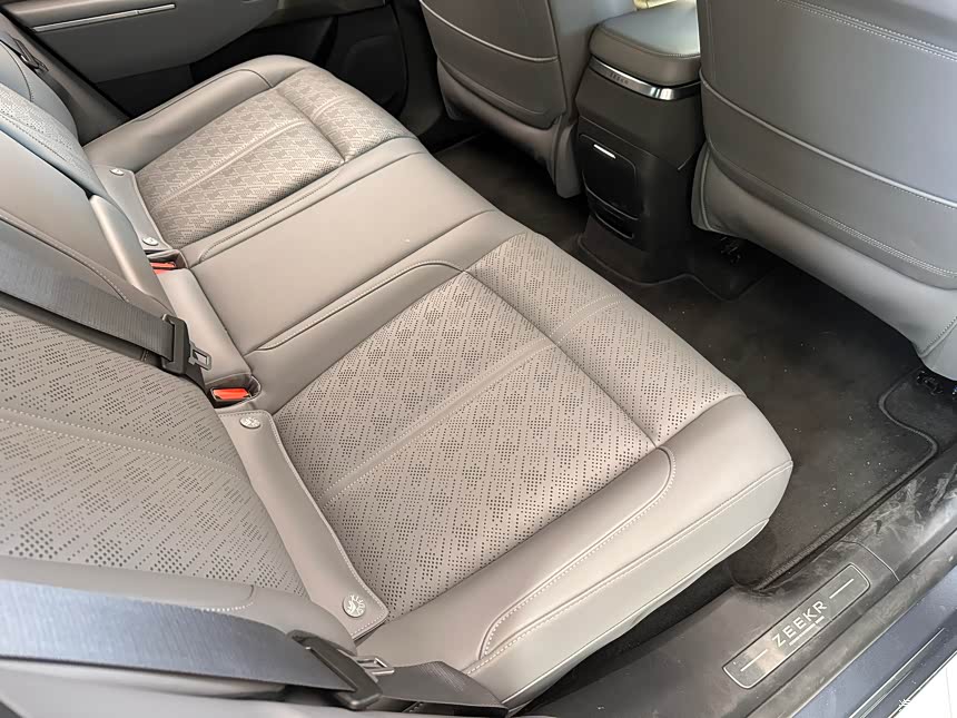 • 整体风格:由首席设计师Stefan Sielaff领衔操刀,采用上深下浅的双色皮革材质包覆,展现出低调奢华的气质。 • 中控台:取消了极氪007上的拱桥马鞍区 局,追加实体按键,丰富了中控面板装饰,层次感更强。 座椅设计 • 材质:除了全粒面NAPPA真皮座椅外,座椅还采用千鸟格打孔设计,提升了透气性和舒适性。 • 功能:后排座椅是一大亮点,配备“同级唯 一”电动滑轨,靠背可躺倒134°,还具备通风、加热、按摩功能,提供了舒适的乘坐体验。 氛围营造 • 灯带:车内配备长度为4673毫米的环绕式 “浮光涟漪氛围灯”,可营造出温馨、舒适的车广行围。 • 音响:中控台上方设有葵花纹音响,不仅提升了音质效果,还起到了装饰作用。 科技配置 • 中控屏:中控台搭载16英寸车规级量子点膜 mini-led中控屏,显示清晰细腻,色彩鲜艳。 • 后排娱乐:后排提供小桌板和多媒体屏,支持视频、音乐、KTV、游戏等应用,为后排乘客提供了丰富的娱乐功能。 细节处理 • 车门内饰板:内部由大面积钢板覆盖,预留检修口,使用发泡膜密封,隔音棉面积大,有效降低车内噪音。 • 后排头枕与座椅钢板:后排座椅头枕齐全,靠背有完整保护钢板,提高了后排乘客的安全性。