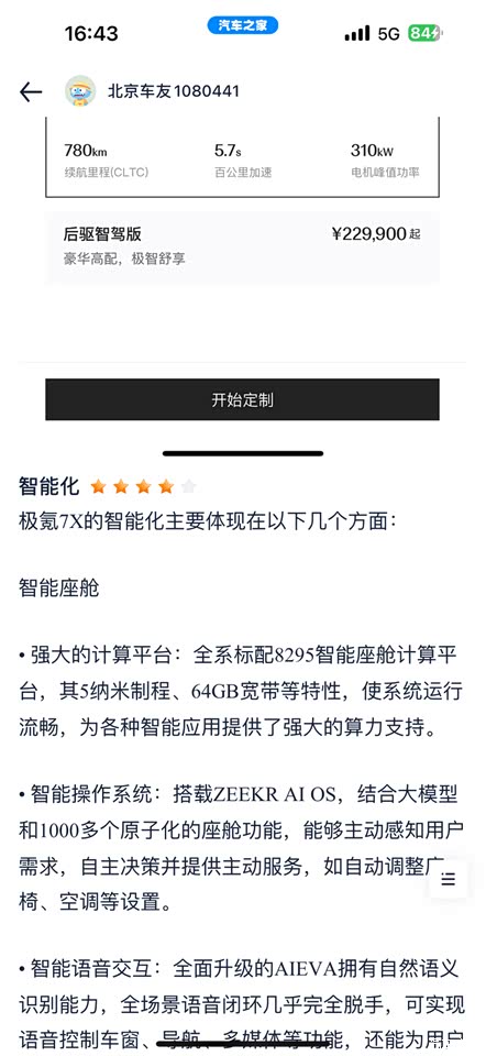 在电动汽车的世界里,极氪7x以其独特的魅力脱颖而出,成为了不少驾驶爱好者的新宠。它不仅仅是一辆交通工具,更是一次激动人心的驾驶体验。 最满意的首先是动力性能强劲,续航里程出色,智能配置丰富,乘坐体验舒适,外观设计时尚。
