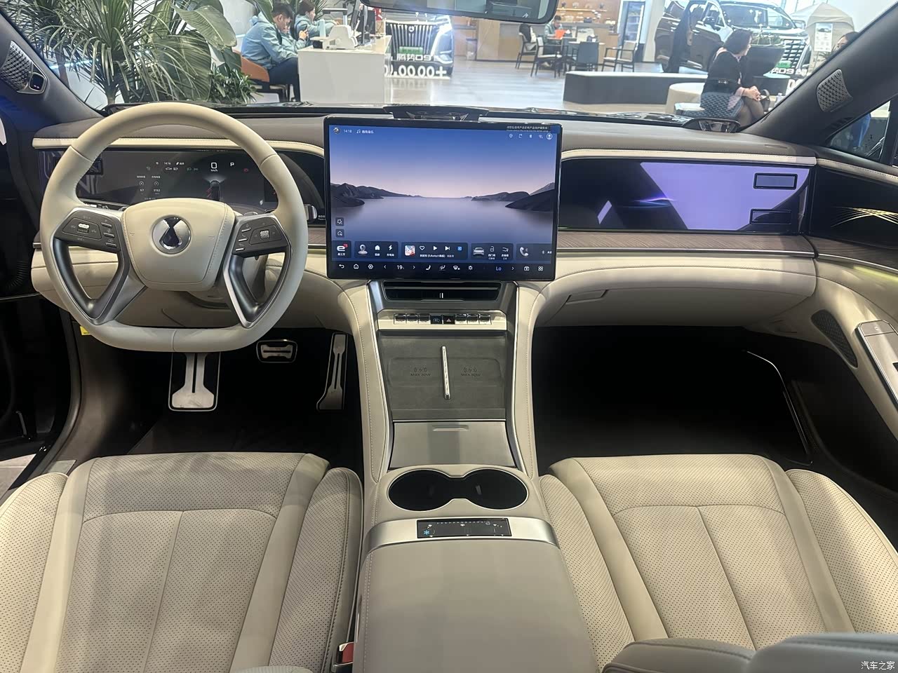 腾势Z9的内饰设计同样出色。整体风格简洁大方,同时又不失豪华感和科技氛围;中控台采用了大尺寸触控屏幕、全液晶仪表盘等配置,操作方便且直观易用;座椅采用高级皮质材料包裹而成,手感舒适柔软透气性好,乘坐舒适度高。车内还配备了丰富的储物空间以及杯架等实用功能。
