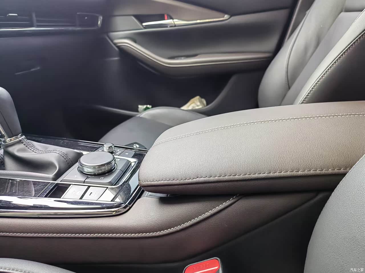 CX-30内饰是我喜欢的类型,圆滑,简洁,流畅,用料非常不错,棕色皮质中控扶手的设计非常好看顺手,开车时手搭在上面很自然。皮质坐椅舒适性,包裹性不错长途也很舒服,自动空调可以一般我只开21度2级风量已经够用,