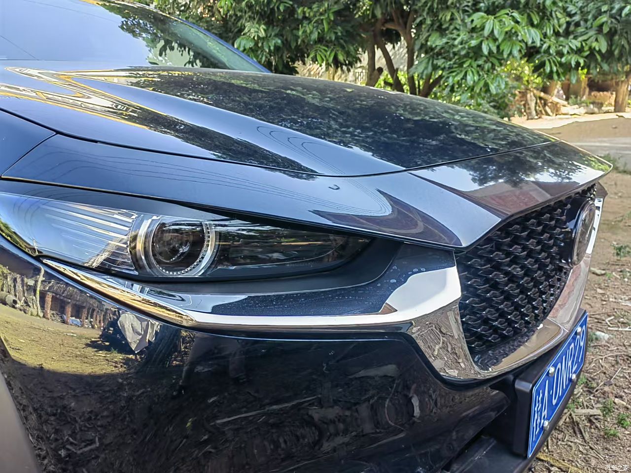 非常喜欢马自达的内外设计,最旱认识马自达是20多年前南宁读书时看到的929,内外设计都与众不同,因为是美术生,又喜欢这种圆滑的设计,当时的车设计方正直面居多所以就记住了马自达的929,包括内饰。除了车头直到现在仍然能在马自达车身上找到它的影子,特别是简洁圆滑的外形侧线条,中控,出风口,除了马自达的外观设计,它独有的魂动红颜色让人惊艳,魅力十足。我的钴蓝色,想要魂动红但觉得与黑色下围搭配不好看。这个色远看是稳重深邃的黑色,近看变成闪着金属漆亮点的深墨蓝色。起马满足了我的美术审美观。