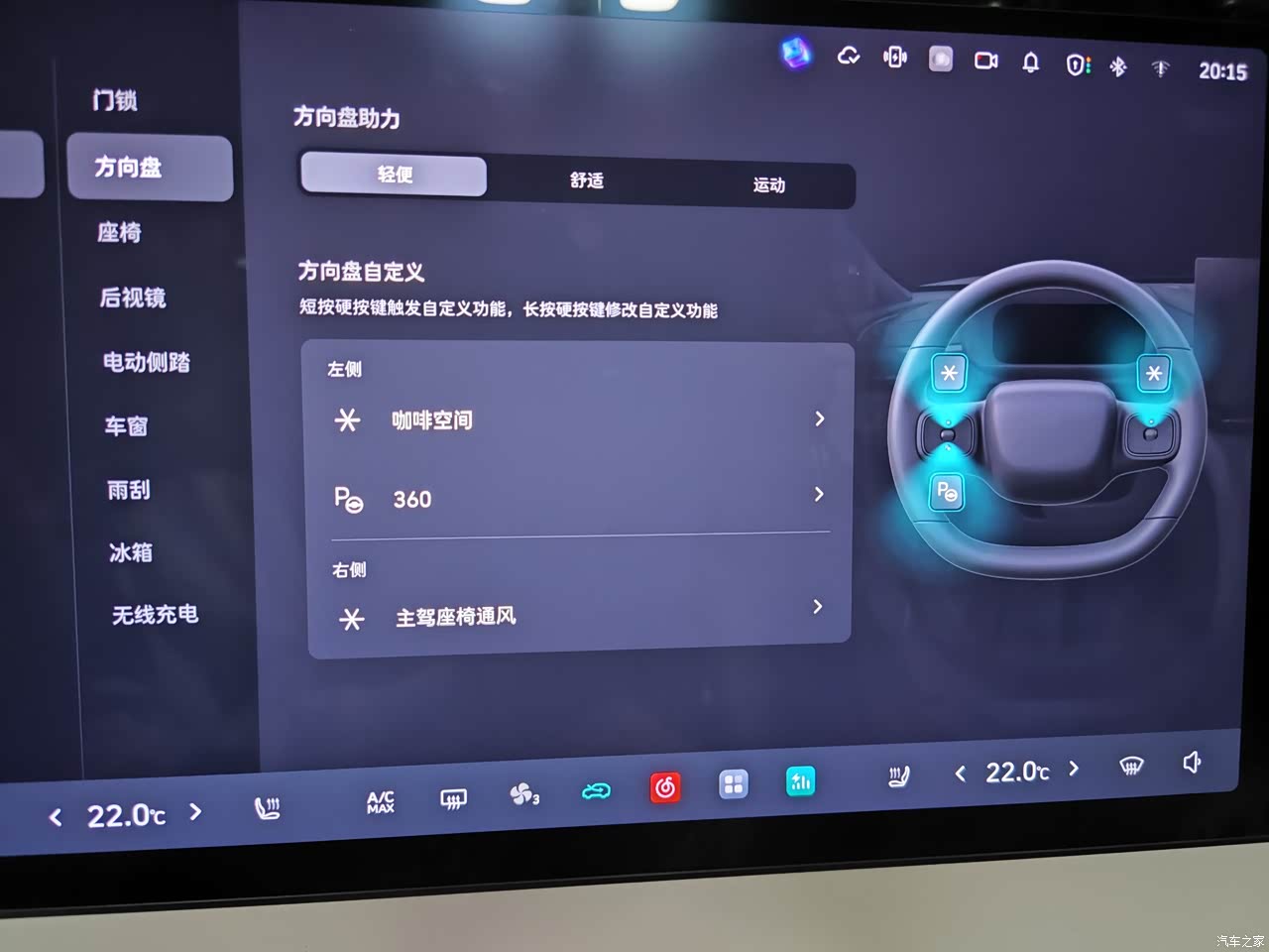 在没有提车时我感觉超过五米的SUV开着一定会特别吃力,并不是特别的好操控。但实际开上的时候感觉并非如此。纯皮的方向盘握起来颇有手感,再加上它的方向盘总共有三个力度可以调剂轻便,舒适和运动。我个人比较喜欢轻便模式,在轻便模式下感觉方向盘会比较轻,一只手就可以控制车辆方向,驾驶起来无压力。
