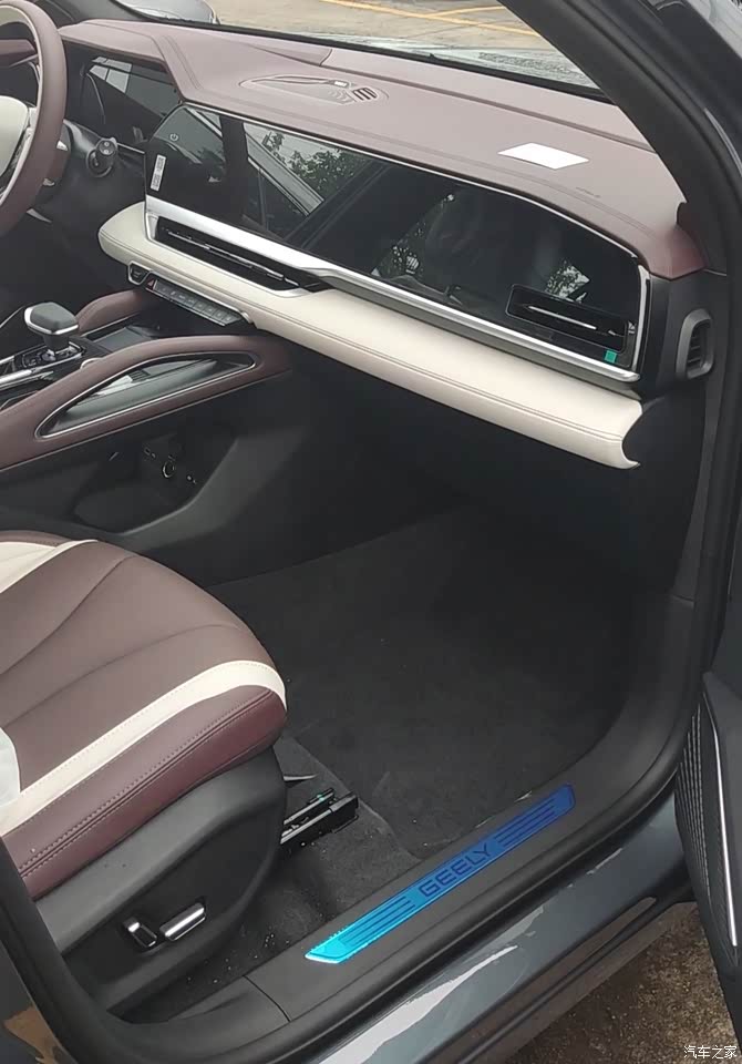 星越L内饰相对于我接近的传统车型,全车中控,车门使用大量的包皮工艺,座椅全皮工艺,以及环保麂皮顶棚,为车内增添几分豪华内饰感。