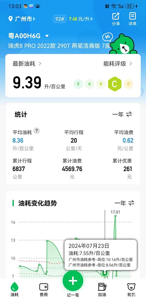 8.2L百公里油耗