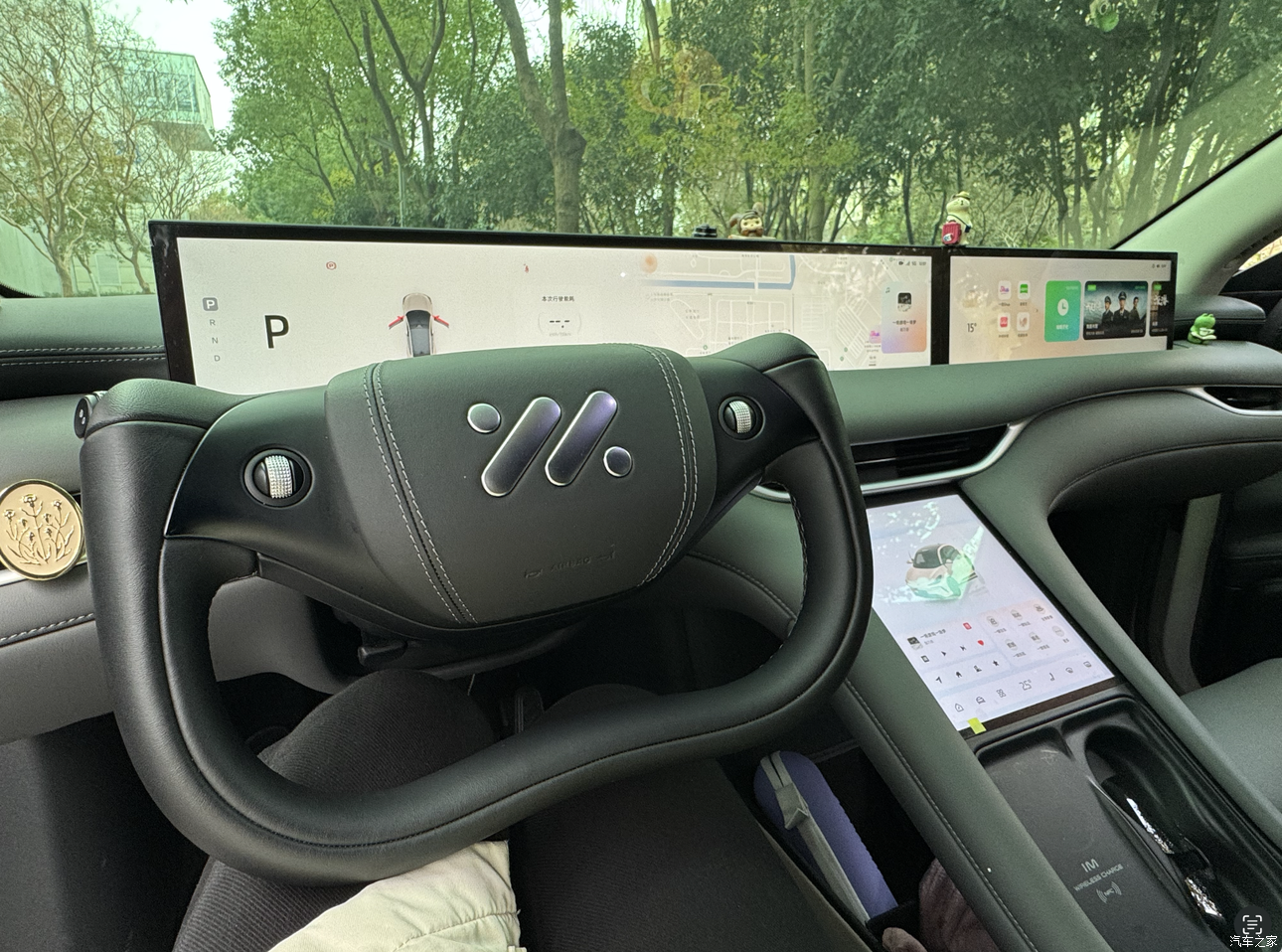 中控设计新颖,独一份的带鱼屏,每次上车自动升起很有仪式感。座椅很舒服,饰面看着很高级~