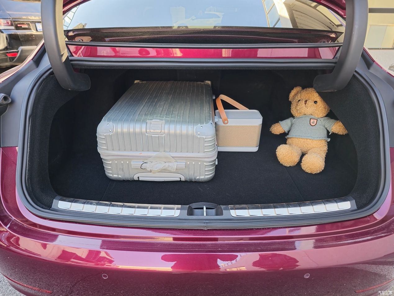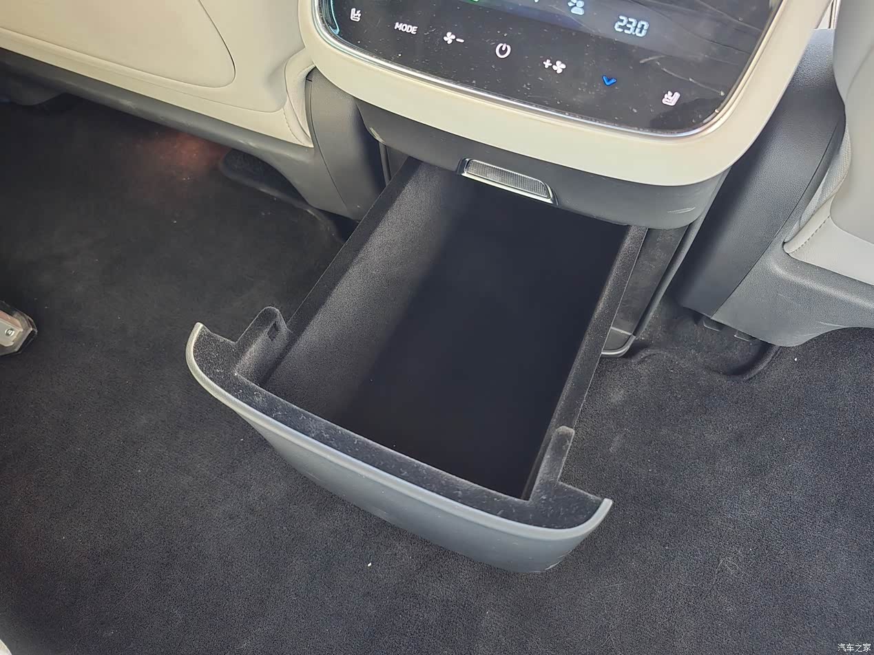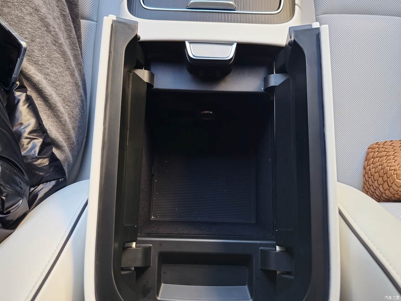 刚刚得到能够体验的资格还是很兴奋的,也在提试驾车的时候向销售顾问取了取经,有重点的去体验这款车,毕竟体验时间有限,只有21天。希望每一天都能对它有进一步的认识。空间方面,车里一共有31个储物空间,其中前排面板储物空间的部分除了纸巾盒和杯托以外还有无线快充面板和2个Type-C有线快充口,不论是随手放一些小物品还是日常充电都非常方便。 扶手箱还配备了一个单独的储物空间,平时出去玩的话可以放一些小毛毯之类的随行物品,拿取很方便。 后排扶手箱设置的是隐藏式弹出杯托,我觉得这个设计非常方便。用得到的时候就弹出来,用不到的时候收起来看起来更加整洁。 最让我满意的一点就是后排还有一个隐藏式的冷暖箱,超级大的空间可以放很多饮料或者食物,温度的话支持3℃-10℃的制冷及35℃-50℃制热。 3050mm的轴距让坐车的人和开车的人都很舒服,体验过的人才知道,旗舰轿车真不是吹的。我的身高在女生里算比较高的了,座椅调到我日常舒适的位置之后,后排依然可以轻松翘起二郎腿。偶尔跟家里老人全家出行也不会感觉到挤。而且听销售顾问说后排的这个零重力座椅是同级首创,这尊贵体验直接拉满了。 后备厢的空间也蛮大的,放个24寸行李箱后还有很多储物空间,绝对可以满足短途出游或者长途旅行的装载需求。而且前面还有一个前备厢,可以随手放一些小号工具箱或者零碎的物品。