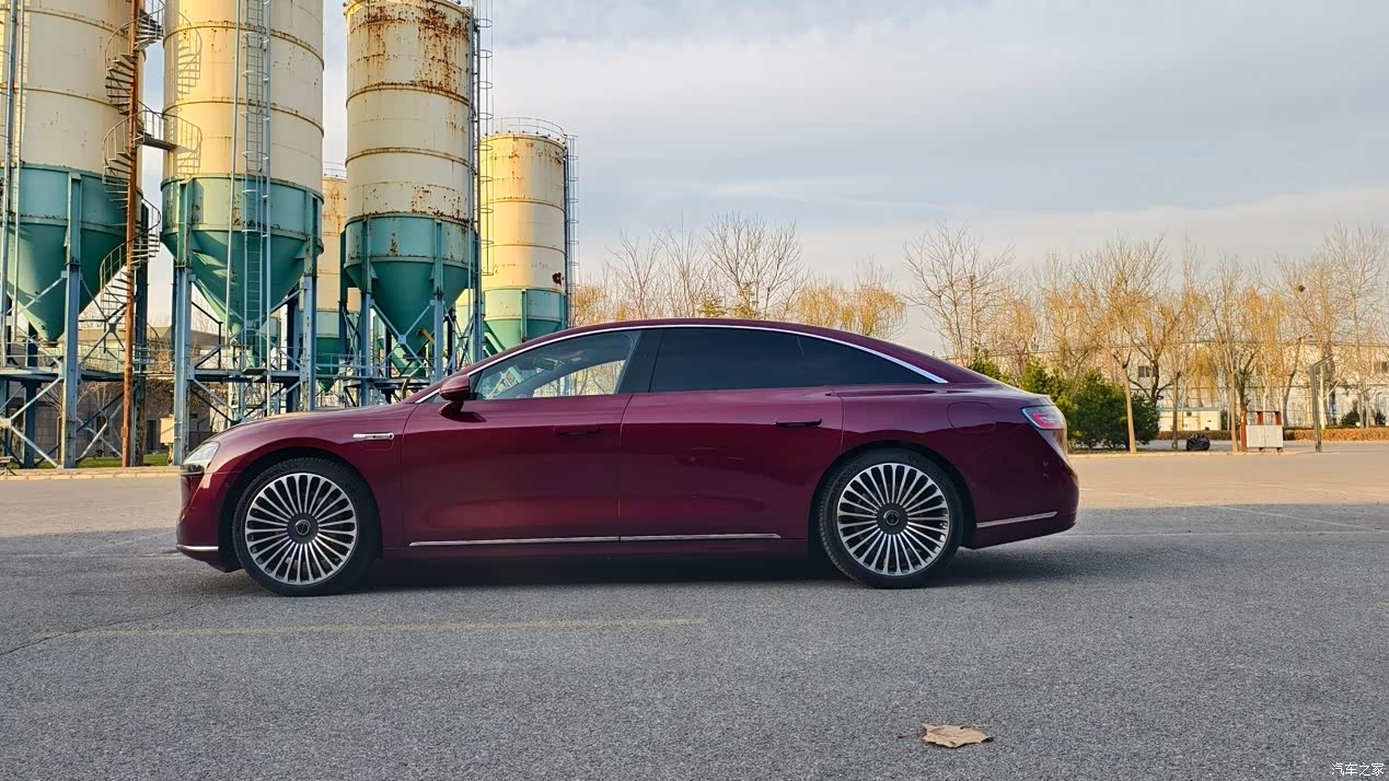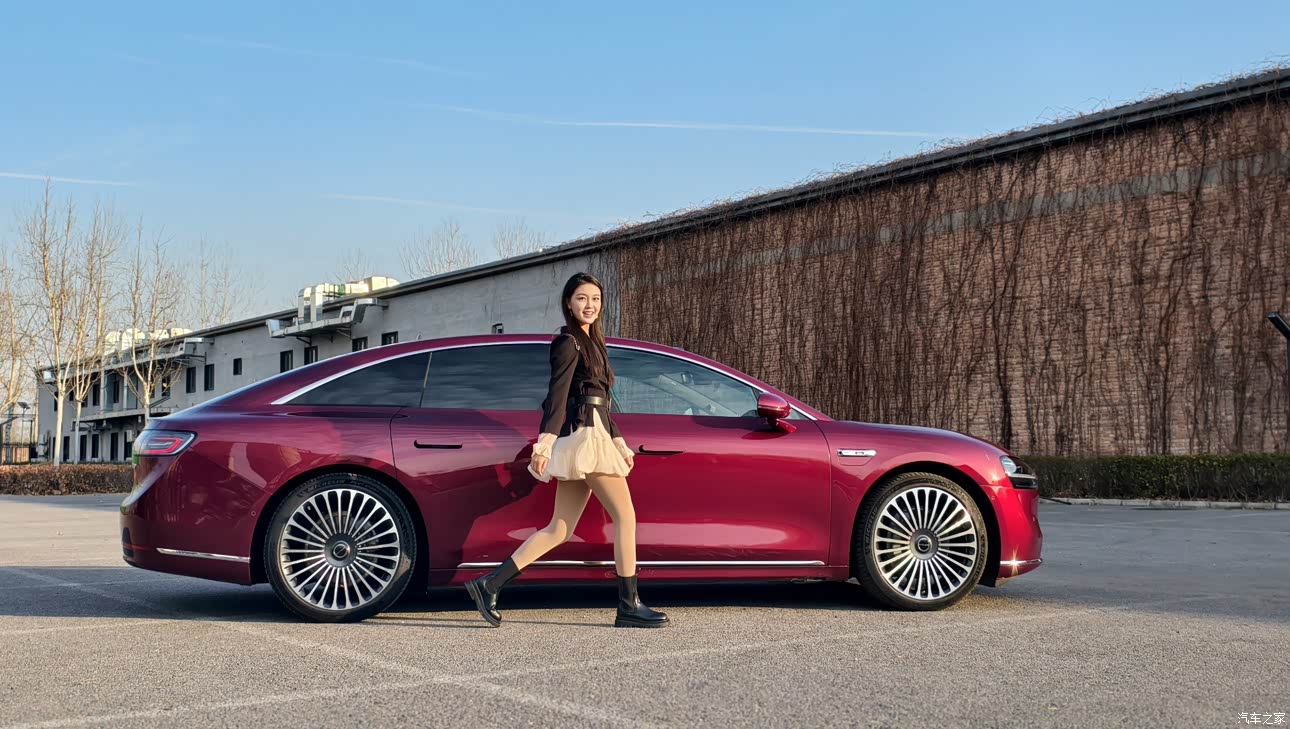 第一眼看到享界S9就觉得它很有气场也很特别。我一直都不是很喜欢棱角分明的设计,觉得那样太有攻击性了,享界S9的整体线条非常优美舒畅,就非常符合我的审美。 我的这台车是“寰宇红”,据说为了让这个颜色更加完美,色彩设计师和材料工艺工程师联合全球顶级车漆伙伴历时一年多的时间、500多次配方的反复优化,最终才锁定了这个车漆配方,这个颜色在阳光下真的很高级,既有红色的端庄,同时还有紫色的优雅。再配上这个21 寸的星辉锻铣轮毂,豪华感直接拉满。而且这个星河大灯点亮后真的很好看,有一种身处浩瀚星空的感觉,科技感足足的。