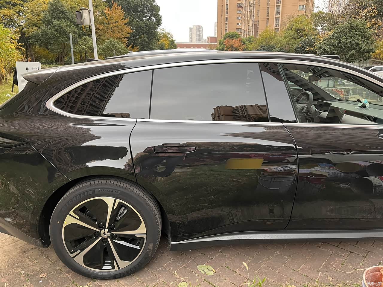 从看车,试驾到大定只用了2天时间,速度之快我们自己都没想到,总体过程就是看了很喜欢,开了蛮不错就没有纠结直接定了。对于ET5T的外观我们夫妻俩都很喜欢,符合30岁年轻人的审美,沉稳大气又时尚,对于日常通勤和家里两代人出游的需求都可以满足。有一个小插曲是我们也在网上看了其他品牌的车型,但是没有选择去试驾,ET5T是我们唯一线下试驾的车型,包括提车之后,也是越看越喜欢,整体线条流畅简约,从车头到车尾一气呵成,车侧的顶棚从B柱开始下滑,形成一个自然的弧度,辨识度很高。车尾部分是贯穿式尾灯,夜里行驶也是非常醒目的。开始我们看的是镜空粉,因为平时主要是我老公在开,最后定了黑色,黑武士很帅是真的,不耐脏也是真的,痛并快乐着。