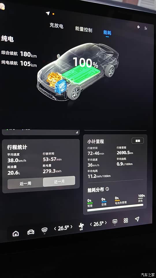 1.夏季开空调24度自动模式,纯电续航在115公里左右。 2.秋季不开空调,纯电续航最高125公里左右。 3.初冬最低气温零下10度左右,纯电续航80-90左右,暖风比较费电。