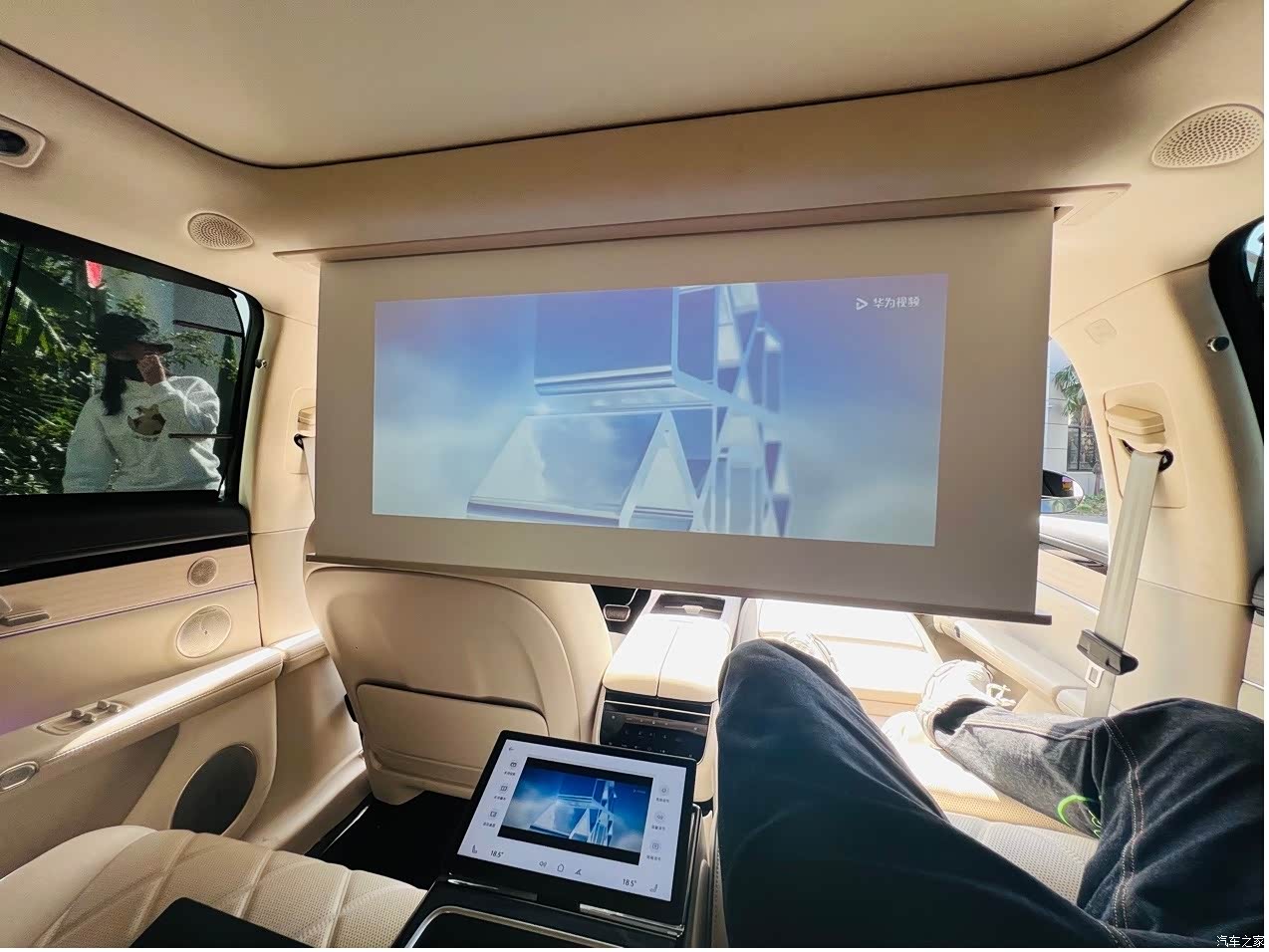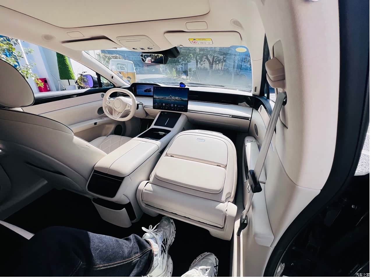 内饰: 坐进座舱犹如坐进了飞机头等舱,座椅的配色实在是太漂亮了,再一次长在了我的心尖上,对于设计师而言,简直是一种视觉享受。配上Nappa真皮包裹,颠覆了以往对Nappa真皮的认知,这东西就像服装面料的选择一样,羊毛间是分等级的,凭借手感完全能体会的到这种感官的差异化。腰部和腿部被完全承托和包裹并且还有8点式3模式气动按摩,对于我这个有腰肌劳损的老司机真的是太友好了。包括主驾支持14向电动+头枕2向手动调节,副驾支持12项电动调节+头枕2向电动调节,我感觉我在车里装了专业的按摩座椅,不管你是高矮胖瘦坐上享界S9都能给到你最舒适的享受。还有值得称赞的后排零重力座椅,一键开启副驾座椅智能对折,后排零重力座椅自动向后舒展,用户腰部角达到最大的108°,膝盖角达到128°,带来最舒享的后排乘坐体验。像我经常出差且需要接待重要客户以及艺人,这辆车完全可以当作他们的临时休息室,车内还配备了多种时尚元素,如独特的氛围灯和装饰条,让车内充满了潮流气息。