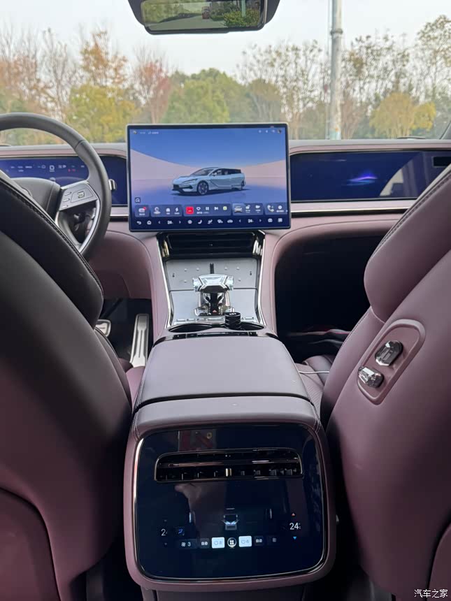 内饰整体来说瑕不掩瑜,我个人还是比较满意的,内饰豪华大气,用料十足,不是纯粹的运动风格,但是让车内也更加有质感。 1.我选的内饰是红色的,红色内饰感觉更加搭配方向盘的颜色。撞色的设计我不是非常喜欢,红色的质感也是非常不错的。 2.关于中控,运动车型档把带来的换挡感觉还是有必要的,我个人是比较喜欢档把的设计,还有不少实体小按键方便功能唤醒,非常实用。大屏幕和副驾大横屏使用感觉还是很不错的。无线充升降的设计仪式感十足,降下之后也有出风散热的功能。 3.两个冰箱的设计也让出行途中多了一个选择,冷暖可以分开,满足了我有孩子家庭的需求。就是后排冰箱导致后排中间突兀,坐人不是很舒服。四个化妆镜,还有美白光照,老婆表示非常满意,设计很人性化。 4.冰箱钢琴烤漆的位置一定要提前贴膜,太容易出牛毛纹了。