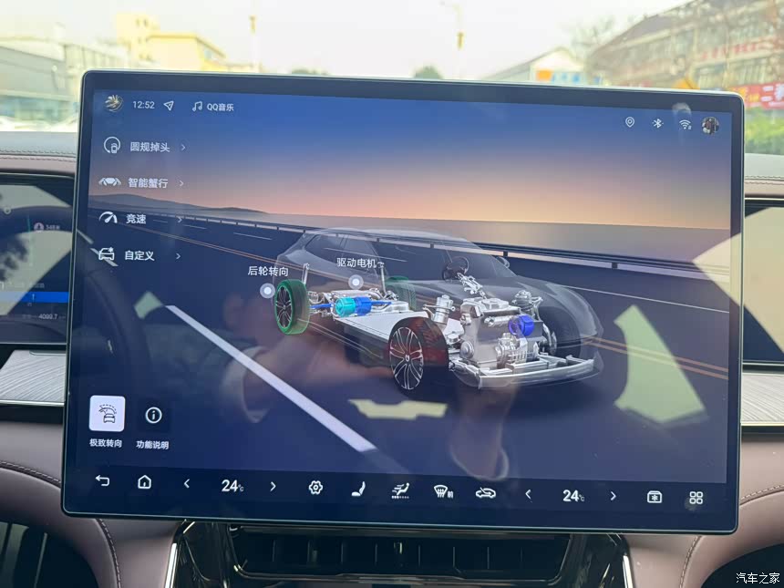 驾驶感受 驾驶感受整体来说:快,稳!在云辇A加持下,整车的舒适感提高很多,滤震效果的很好,整车的舒适感提高很多。底盘的稳定性可靠性也非常不错,在激烈驾驶中,在这个大小的车身和车重的情况下,这个操控性出人意料,给驾驶增加不少信心。并且得益于车子的电门调校,加速非常平顺,经常开到一百二三还感觉好像只有100的感觉,非常稳定。零百加速在竞速模式下可以达到3.6秒左右,推背感十足。在舒适模式下零百加速也在5秒左右,动力是完全够用的,高速的变道超车信心十足。车子自带的易三方系统也让我在一些狭小位置更加的方便,圆规掉头和后轮极致转向是非常有用的功能。蟹行模式暂时还没用到,但是我认为只要有使用的地方,肯定可以大大方便我的操作。