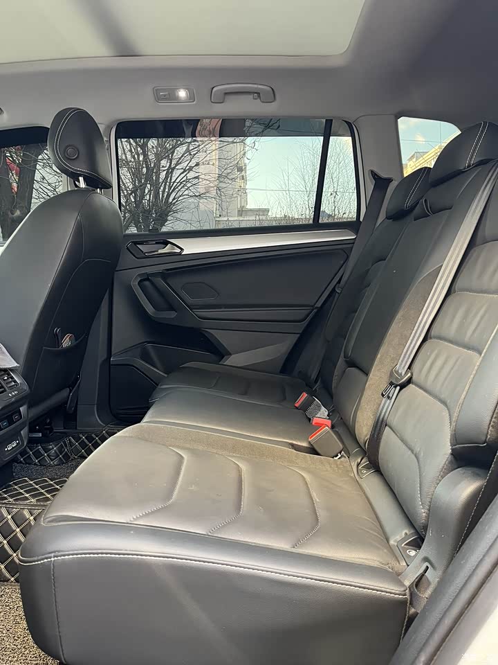 车型配置:真皮、导航、倒车影像、定速巡航、自动驻车、全景天窗、一键启动、多功能方向盘、8英寸中控液晶显示屏等。 标配ESP车身稳定系统、EBD电子制动力分配及ASR牵引力控制,大众在安全性方面极为重视。前排双气囊、前排侧气囊可以保证成员的行驶安全 有人问我上汽大众途观L开着怎么样?我只想用一句话来形容,那就是后悔没有早点买这款车。 很多人都担心这个级别的SUV在中后段加速方面的表现,这点完全可以放心,即便是不是太深踩油门,途观L的提速也非常快。严格意义上来说,上汽大众的调校其实也是让这款车兼顾了一定的运动属性,所以涡轮介入较早,提速相当快,爆发力惊人。空间表现堪称同级别里的“扛把子”!上次全家自驾游,满满当当塞了5个人,再加上各种行李,后备箱居然还能有空余。后排的乘坐体验也很绝,跷二郎腿毫无压力,老人小孩坐着都舒服,完全不会觉得拥挤。 除了动力输出强有力之外,底盘的调校也是关键,充满德味的紧凑型底盘调校不仅让驾驶多了一丝乐趣,超车也多了一丝底气,也很好的兼顾了家用舒适性,再加上出色的NVH静谧性,长途开途观L真的不要太爽。