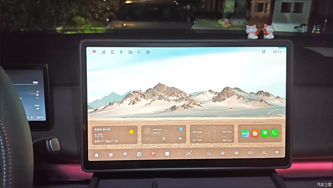 外观有一说一还是挺大气的,属于那种耐看型的。我选的是苔原灰,在不同光线下颜色都会略有不同,一点都看不腻。 这车还有8种灯语,搭配上贯穿式大灯,灯亮起来很帅,感觉很有面子。