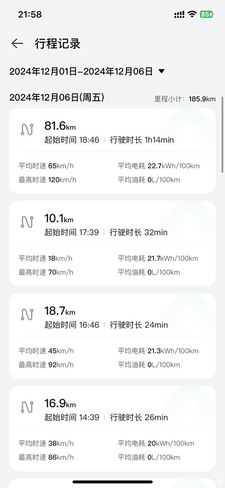 平均接近21 22的电耗,不算低,40度的电池,算上锁电20%,平时充满到95%来算,真正能用的电量只有70%x40度等于28度,也就能开一百多一点的公里数。而且这个电耗只是行驶电耗,冷暖气没有加进去,冬天的时候如果暖气卯足劲开,暖气能耗有时候能追平行驶能耗了