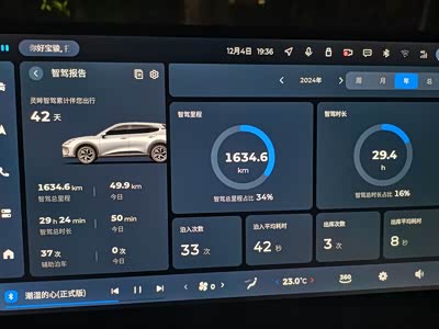 续航的话我主要就是在重庆开车上下班,有上坡下坡,夏天或者温度好的时候一般在8.5-9.2折这个样子,算下来能跑500公里左右,现在温度低了很多,我是城区加快速路,算下来一般在7.5-8折这个样子,也就是450-480公里,感觉还算不错。