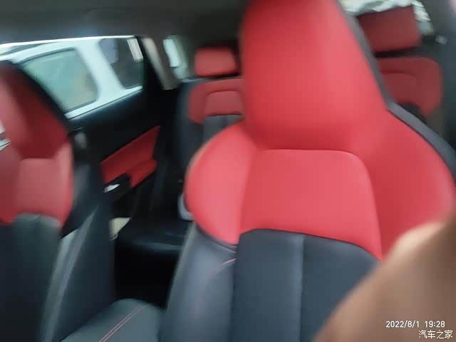 黑红内饰配色感觉很大气,有层次感。中控屏大方。下面一排钢琴烤漆的实体按键简单明了。就是氛围灯太小气了。7个小灯泡还是单色的。买车的时候一眼就相中了这黑红内饰,年轻有活力。车内看的到摸的到的地方都是软包材质,没有塑料感。这个还是要赞一个看。座椅仿皮加缝线花纹设计也是一个亮点。中控一排实体按键操作也相当顺手。镂空的中控储物箱也实用。放点纸巾擦车巾很方便。音响效果也不错。不要开低音模式,太沉闷了。音乐灯光秀真的是瞬间社死的感觉。感觉智商都被拉低了。