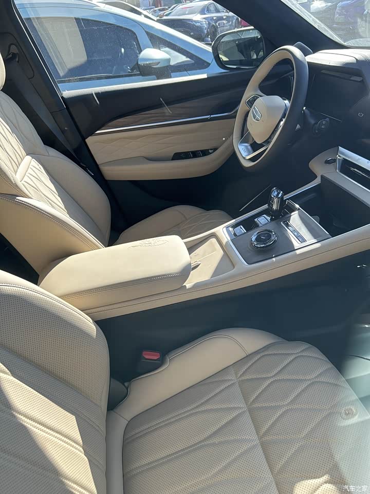 唯一不满意就是前格栅由凹样式调整为向凸起后,虽然具立体感,但起老款星越L前脸我喜欢,谁让我喜欢东方曜内饰 综合比较下来 然还喜欢我车啦?