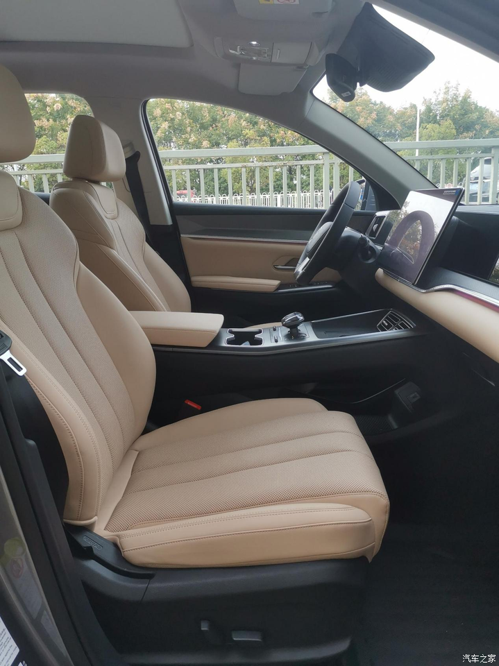 内饰设计还是不错的,简洁大方,我发现中控台的布局非常合理,所有功能按键都触手可及,操作起来非常方便,而且中控是15.6英寸的,看着眼睛很舒服,显色也清晰,一点不卡。唯一不好的就是不耐脏,像我这种家里有小孩的,还特别喜欢在车上玩,要是有耐脏的配色就好了。