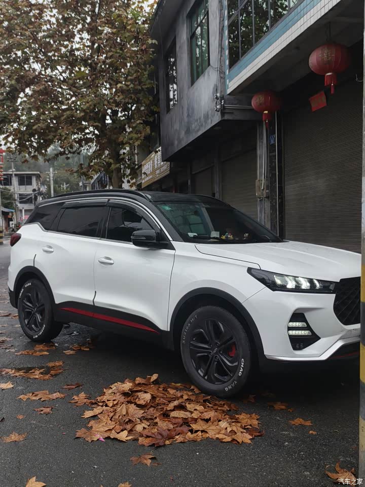外观我还是比较满意的,当然是在我黑化改装以后,中网和车标喷黑,悬浮顶贴膜。改出来的效果还是不错。个人觉得比虎7 plus的树状格栅要好看顺眼,那个看起来像钢牙一样。