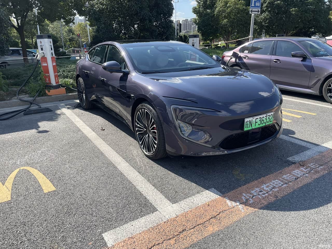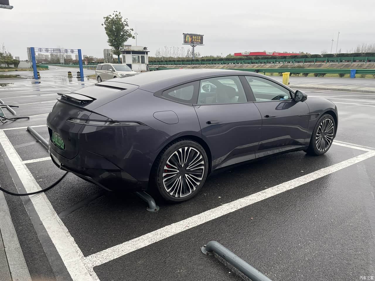 外观酷似跑车,因为额外换了21寸轮毂和红色卡钳,每次开车从人群里穿过,都能感觉人群里侧目的眼光,想低调都难。车身我选了云紫,比较耐看,强光照射是紫色,暗光看上去黑色.