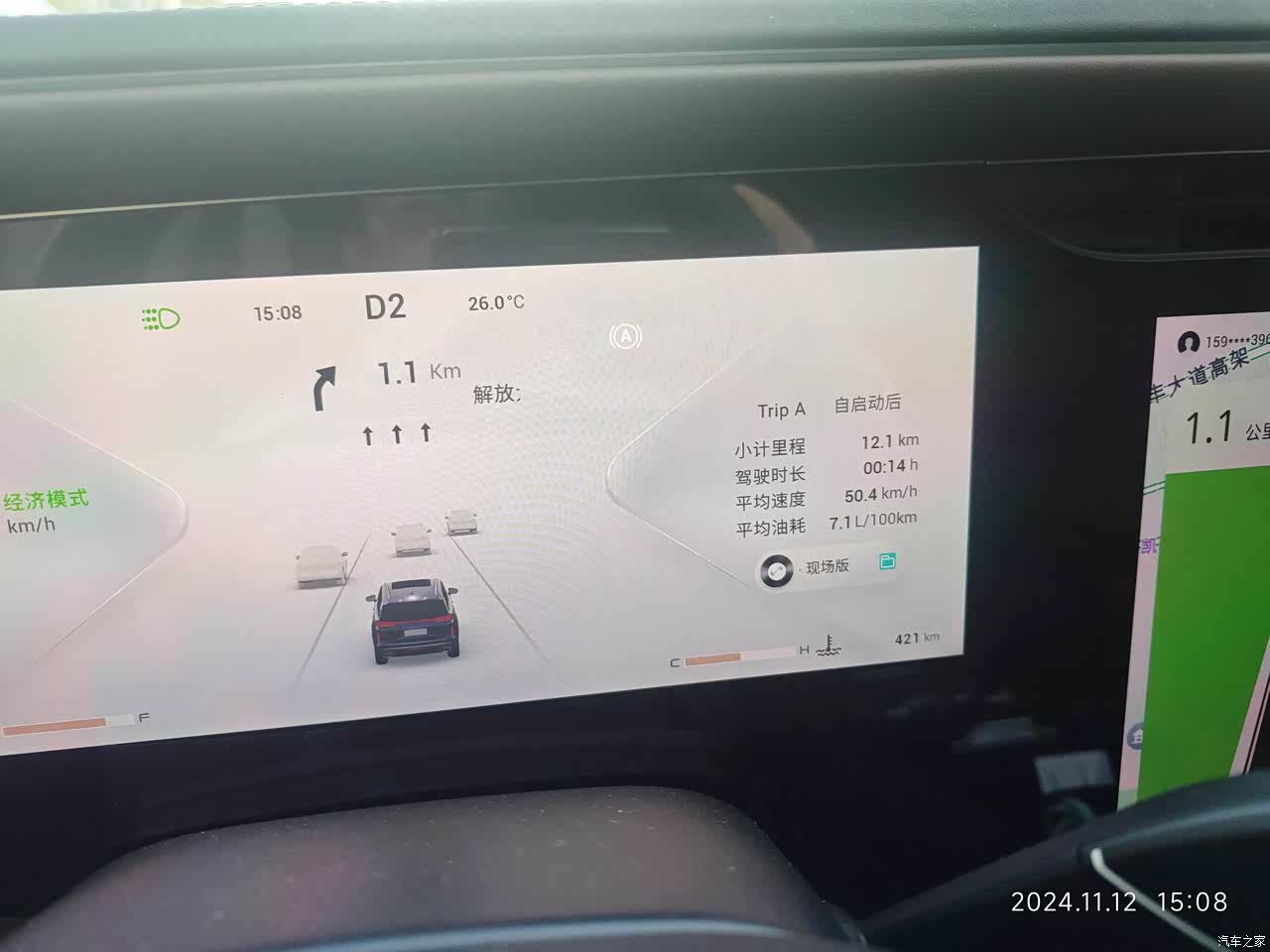 每天上下班驾驶中,我使用的是经济模式,说是这个模式会省油一些,我目前的油耗10个,那个欢乐表我最低开到了7.1个。目前驾驶里程已经1000公里,每天上下班39公里。武汉的交通在早晚高峰时候确实很堵,再加上傻萝卜增加了不少不确定因素的堵车点。在这个这么大、重的车10个油确实算不错了。有些车友问等红绿灯时候自动驻车需要换挡不,我提醒一下大家,自动驻车时候D当转速800转,N档700转。大家自己决定换不换档吧。