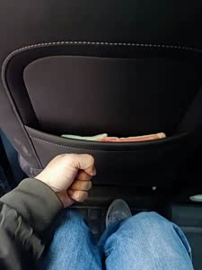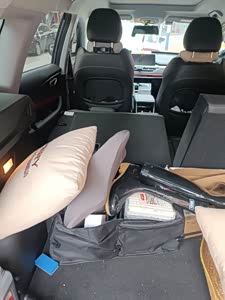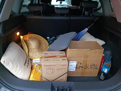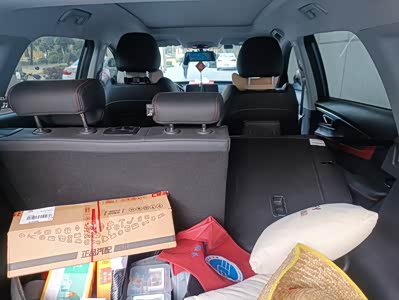乘坐空间宽敞,我身高1.7米的坐进后排,腿部空间有2拳左右距离,头顶空间有1拳多富余,坐下三个大人也不觉得拥挤。 储物空间丰富,前排中控台下方可以放一些证件纸巾盒之类的,四个门板都可以放置水瓶,手扶箱可以放一些个人物品,前面还有两个杯架可以放下两个保温杯。后备箱容积475L,常规空间尚可,可以放下五个20寸的行李箱,放倒后排座椅后,空间能进一步提升,满足日常出行及装载大件物品需求。
