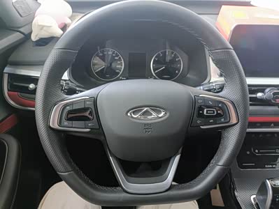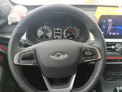 中控台: 瑞虎七中控台设计兼具时尚与实用。在外观上,采用黑色与棕色或红色等双色搭配,视觉冲击力强,部分区域皮革包裹及缝线装饰,提升了内饰质感。 三辐式多功能方向盘采用真皮包裹,握感舒适,两侧集成语音通话、定速巡航等控制按键,方便驾驶操作。10.25英寸中控液晶屏显示清晰,集成导航、多媒体播放、手机互联等丰富功能,智能语音助手可通过语音指令操作中控屏。仪表盘采用液晶指针设计,强光下也能清晰读取信息,中间彩色液晶屏可显示剩余油量、车辆状态等。此外,车辆还配备一键启动、自动空调等实用配置,但部分空调常用功能需通过中央屏幕操作。整体而言,瑞虎七中控台功能丰富多样,为驾驶者带来了便捷、智能的驾驶体验。