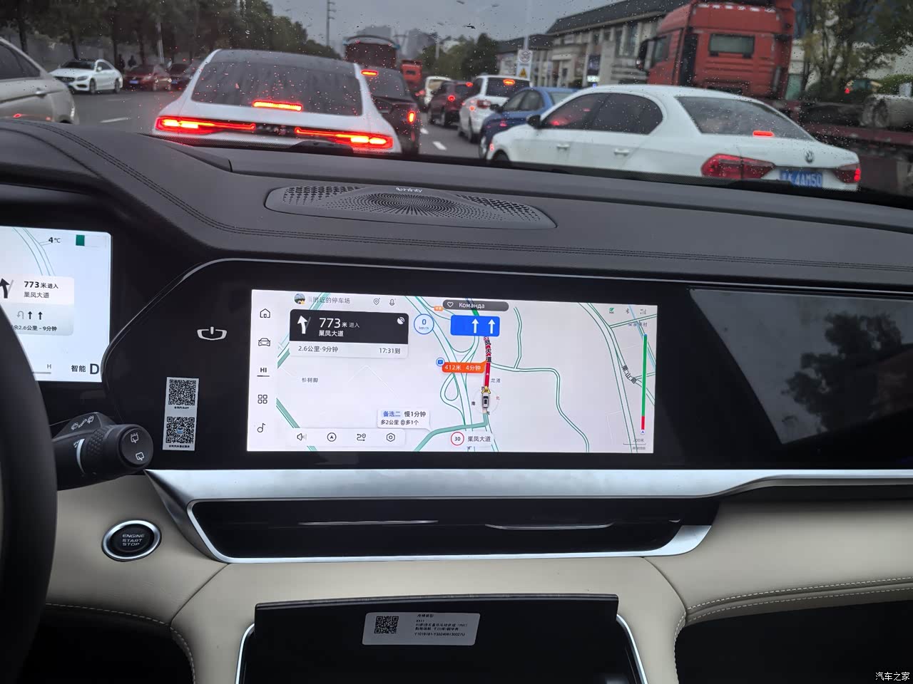 买车除了空间大,更重要就是内饰,家里装修一样的装修好的材料好的风格非常舒适,新款东方曜的内饰采用环保材料,我在网上查了一下自己开那么久没有一点异味,也许这就是星越L的优势和亮点,新款还是配备大屏幕,细心的三指控制导航,对我来说非常好的帮助,我经常出差跑公司,导航时间可以用中控导航到显示屏上,还有25.6英寸抬头显示,之前看了其他品牌抬头显示就不清楚和不清晰,现在这款车就可以看非常清楚